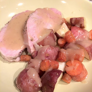 I also cooked vegetables in the same pan as my pork loin but they came out underdone, so this is something I will continue tinkering with. My plan is to toss the vegetables, baby red potatoes (quartered) and carrots (cut into chunks), in olive oil with salt, pepper, and herbs of choice and start the vegetables in the oven on a separate sheet pan before the pork loin. I'll have to experiment with the timing. Once again, eventually I'll get this recipe hammered out and written down properly so it's not just a vague set of directions.